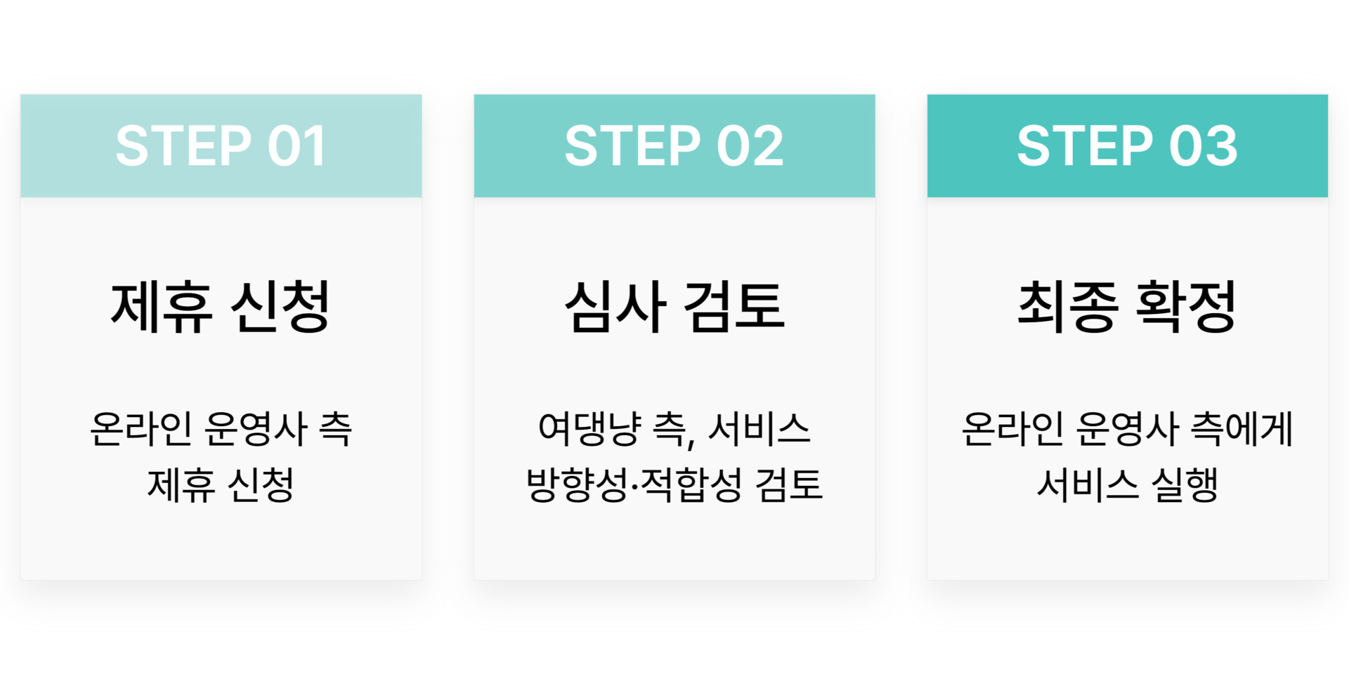 * 제휴 신청 후, 내부 심사와 적합성 검토 절차를 거쳐 최종 확정됩니다.